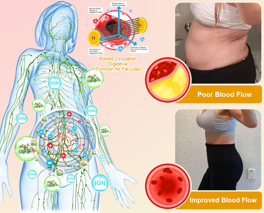 Clinical results show 98% of users saw a significant metabolic boost within 2 weeks, with waist circumference reduced by 20-40 cm after 4 weeks. After 8 weeks, 85% experienced reduced double chin and leg swelling, with an average weight loss of 50-70 pounds. Additionally, 70% reported a reduction in stubborn belly fat. The antibacterial properties of negative ions significantly improve feminine health issues, easing itching and inflammation, with 95% reporting symptom relief.